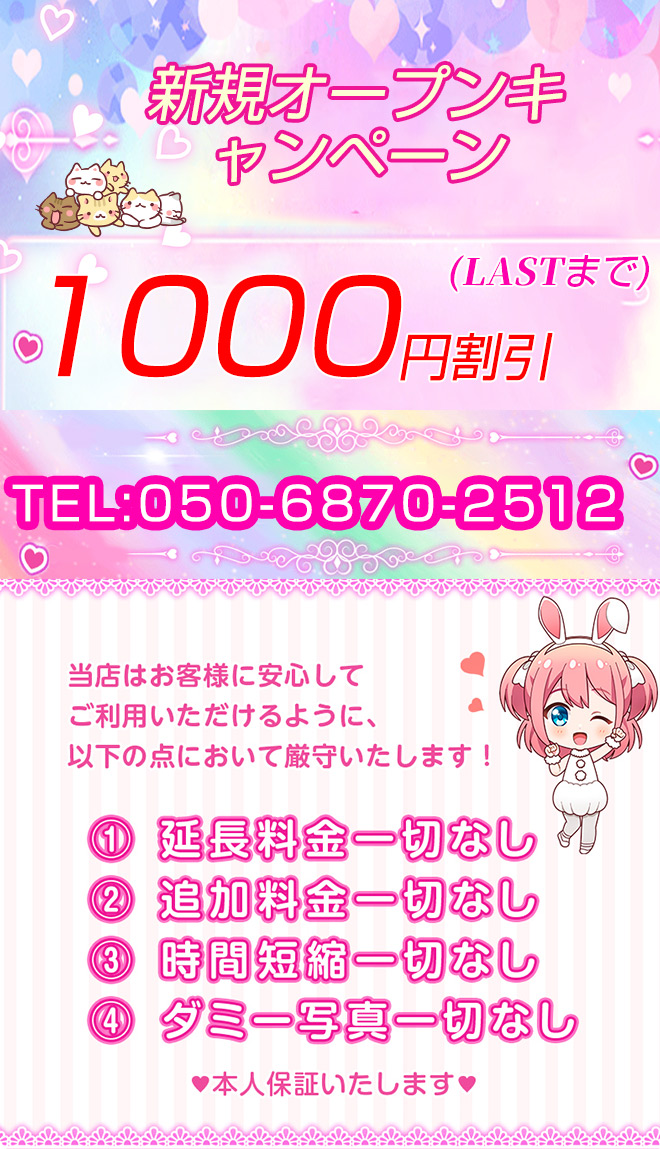 疲れでしたら癒しに来てくださいね。心と身体は一心一体ですがキュートなセラピストと二心二体の癒しを一度味わってみて下さい。心身共に溶ろける感覚を初体験してね!皆様のご来店をお待ちしております
